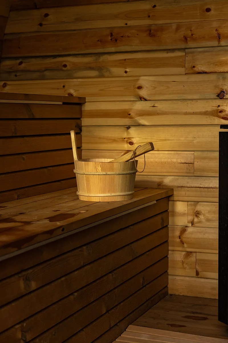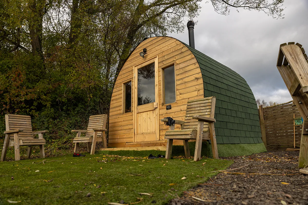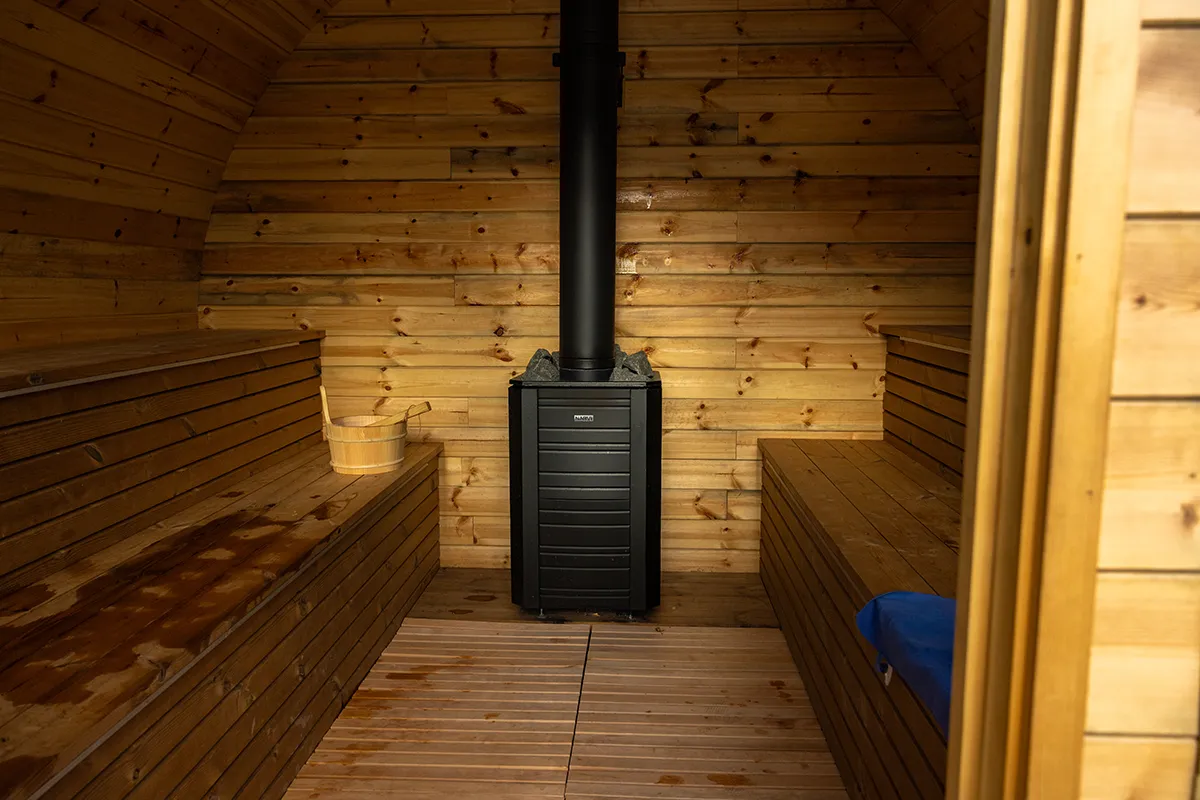 Outdoor Sauna Pod at Woodland Lakes